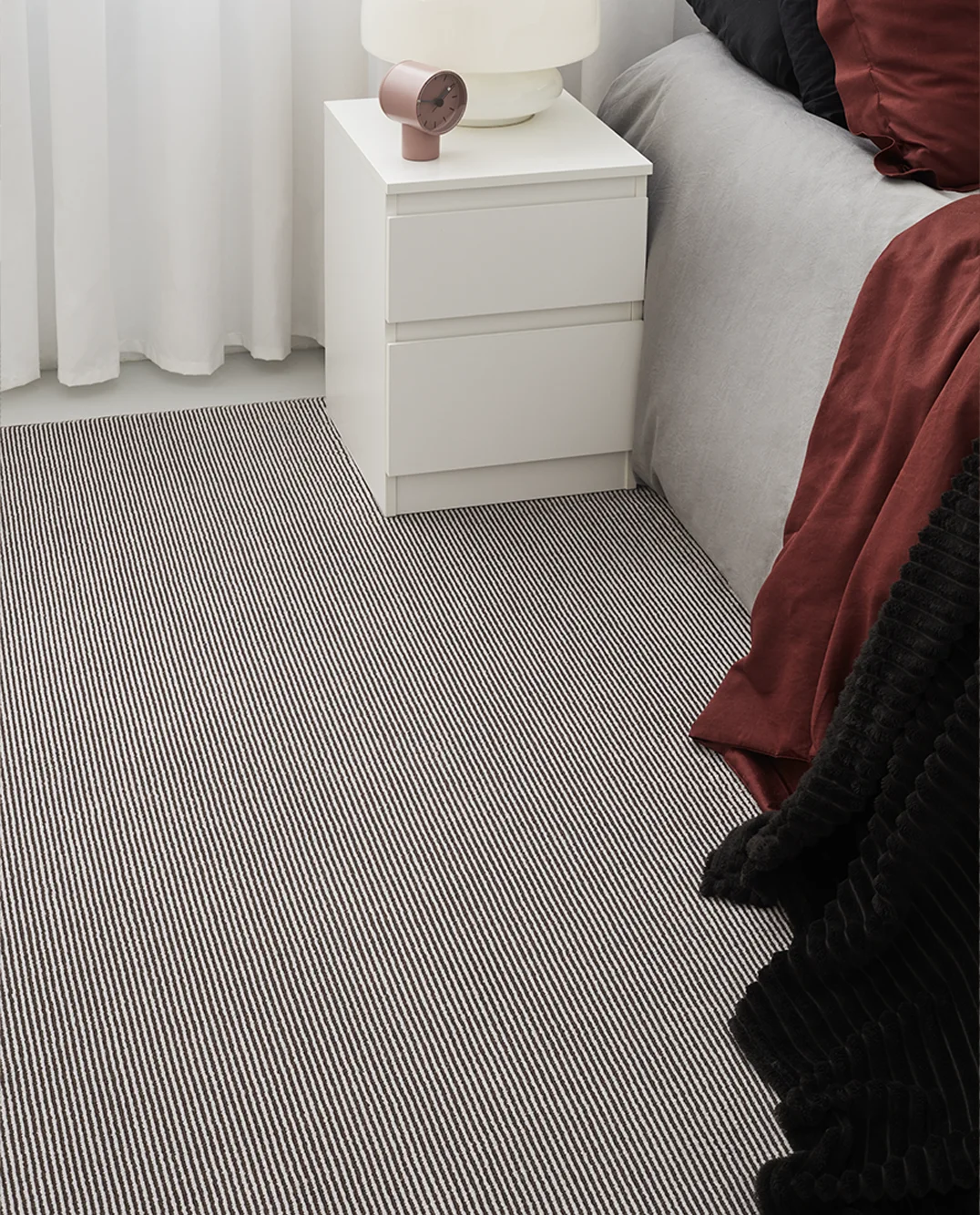 Dywan Rols Ingrid River Basin powstał z tkanin tkanych na tradycyjnym krośnie Wilton, przy użyciu unikalnej mieszanki wełny i nylonu z recyklingu. Połączenie tradycji z nowoczesnym podejściem sprawia, że ten dywan jest niezwykle wyjątkowy. Wykorzystując precyzyjne cięcia i pętle, uzyskano fascynujący efekt, który doskonale balansuje między matowym wykończeniem wełny a błyszczącymi włóknami nylonowymi, przypominając efekt wody. Dywan jest wyjątkowo elastyczne i można dostosować go do niemal każdej przestrzeni. Może on pełnić funkcję wykładziny od ściany do ściany, nadając wnętrzu niepowtarzalny charakter i komfort. Dzięki niemu przestrzeń nabiera osobistego wyrazu, a tradycja spotyka się z nowoczesnością, tworząc harmonijny i stylowy efekt we wnętrzu. Dywan Rols Ingrid River Basin dostępny jest w sześciu wariantach kolorystycznych.