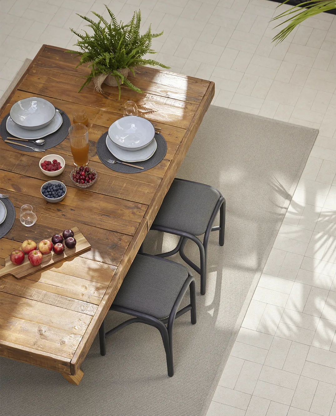 Dywan Rols Maya Dune Coconut to synonim elegancji i wytrzymałości, dzięki wykorzystaniu sizalu. Jego gładka powierzchnia jest przyjemna w dotyku, a jednolity splot tkacki zapewnia trwałość na wiele sezonów. To doskonały wybór dla tych, którzy cenią sobie jakość i wyrafinowany design. Jego piękne wykończenie to wyraz troski o estetykę, nadające elegancję każdemu tarasowi oraz wnętrzu. Model został wykonany z materiału z recyklingu, co sprawia, że wykładzina jest odporna na wodę oraz intensywne działanie promieni słonecznych. Dywan Rols Maya Dune Coconut dostępny jest w czterech wariantach kolorystycznych.