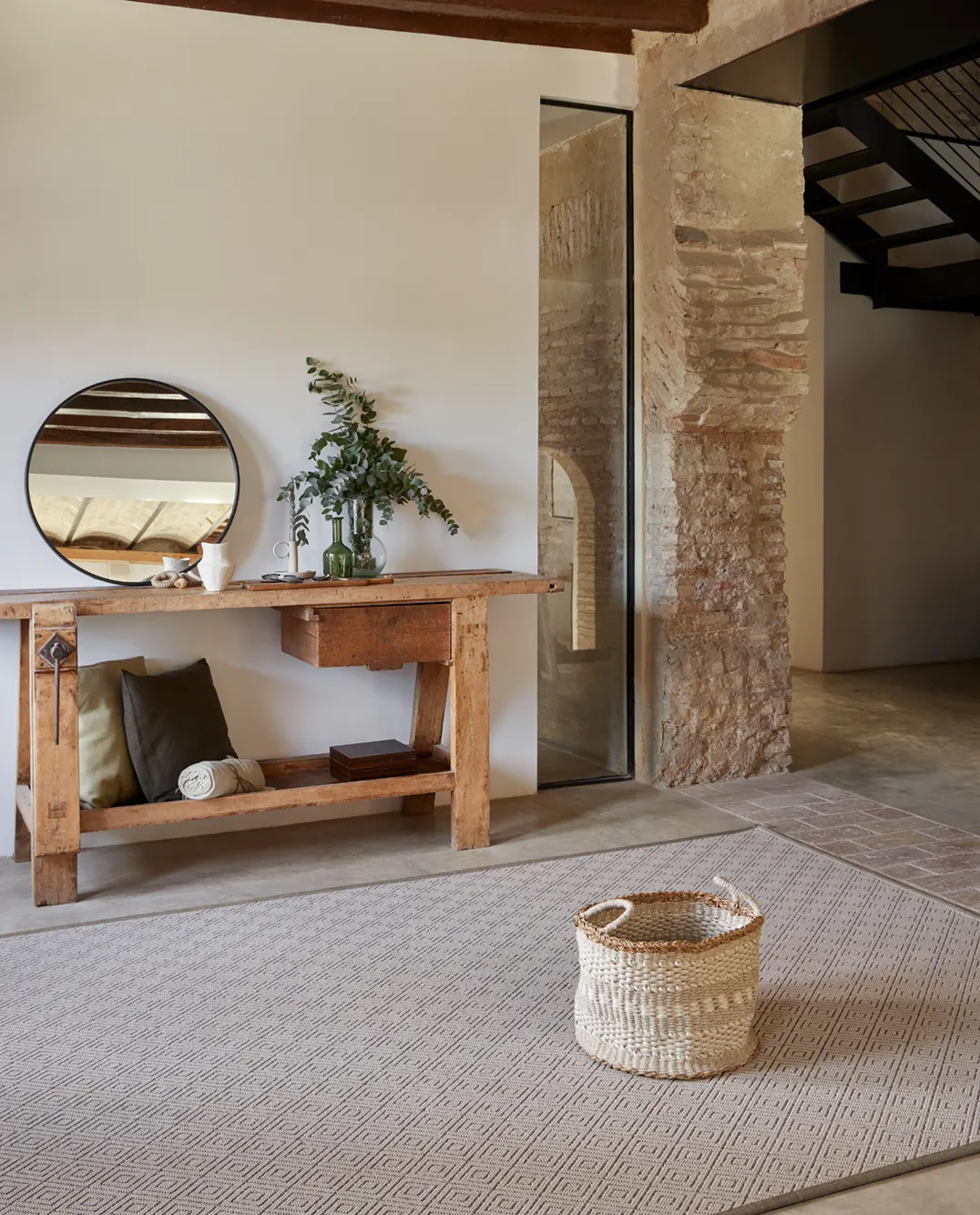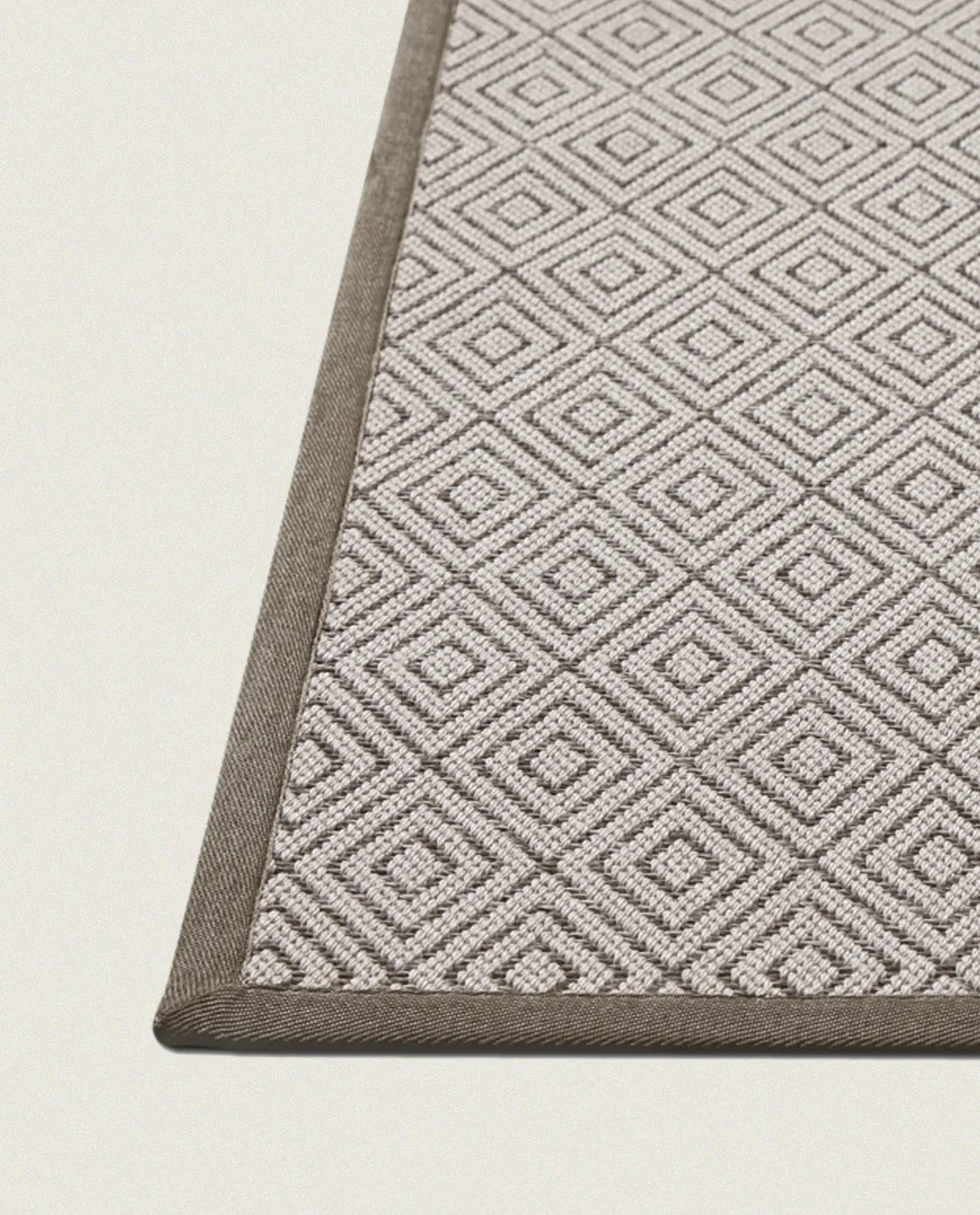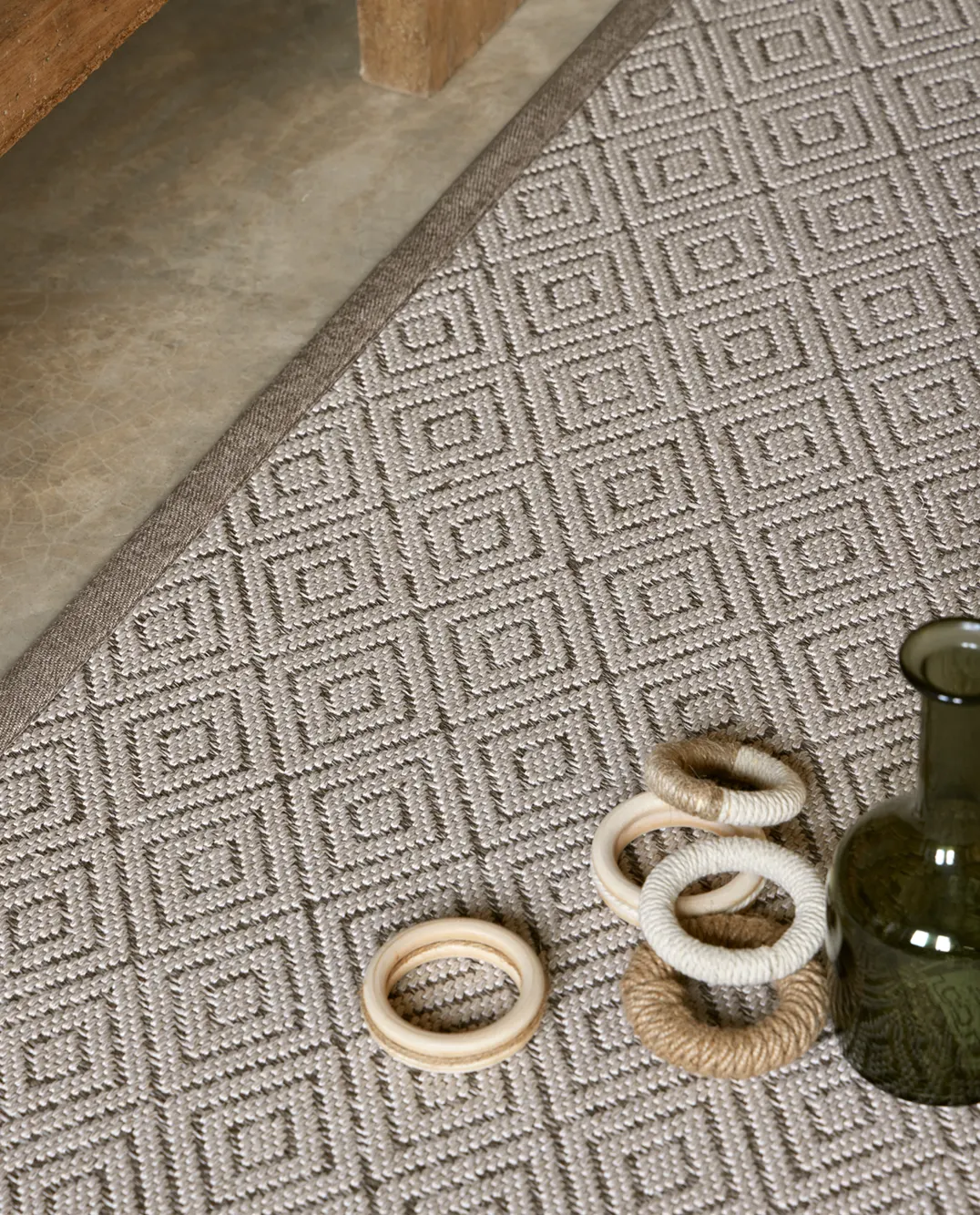 Dywan Rols Maya Rhombus Oat Pure na nowo definiuje standardy dywanów o wyglądzie sizalu. Wzór charakteryzuje się geometrycznym wzorem w romby, który wyglądem przypomina dywany z juty lub sizalu, ale charakteryzuje się znacznie lepszą wydajnością. Geometryczne kształty na powierzchni dywanu tworzą harmonijne wzory, które przyciągają uwagę i nadają unikalny klimat otoczeniu. Jego piękne wykończenie sprawia, że nie tylko jest on funkcjonalnym elementem dekoracyjnym, ale także dziełem sztuki, które dopełni każdą przestrzeń. Dywan ten nadaje się zarówno do pomieszczeń wewnętrznych, jak i zewnętrznych. Dywan Rols Maya Rhombus Oat Pure dostępny jest w czterech wariantach kolorystycznych.