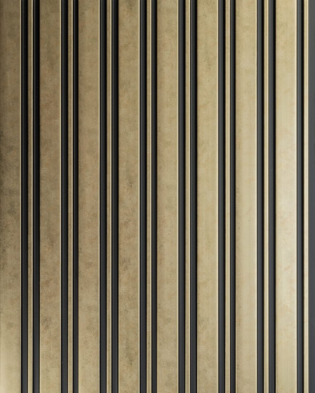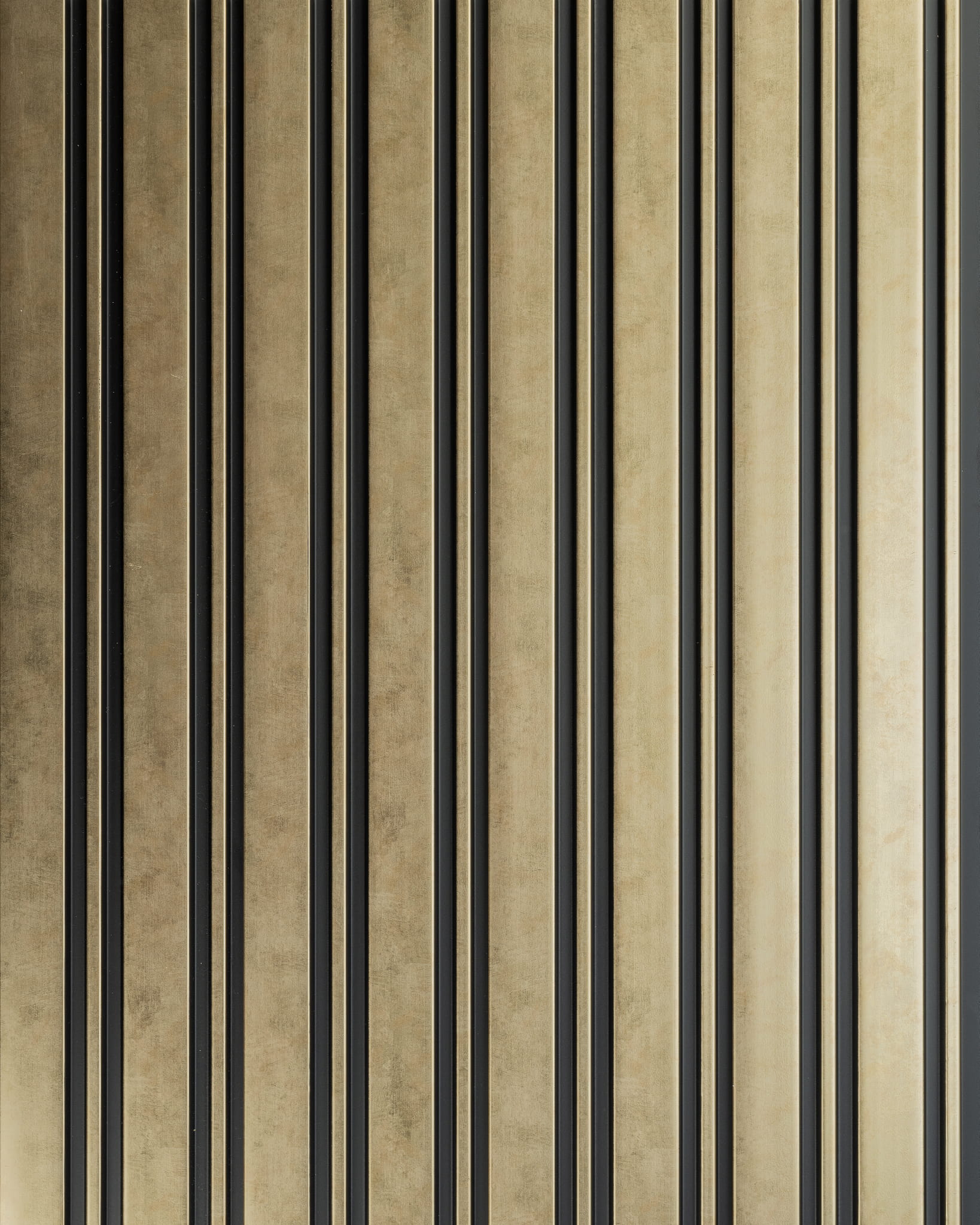 Lamele ścienne Lamelio Milo Gold charakteryzują się unikalnym wzorem, gdzie szerokie i wąskie listwy są układane naprzemiennie, tworząc efektowną, trójwymiarową strukturę na ścianie. Wykonane z utwardzanego polimeru, są niezwykle odporne na uszkodzenia mechaniczne i wilgoć, co sprawia, że świetnie nadają się do zastosowania w kuchniach czy łazienkach, gdzie panuje podwyższona wilgotność.