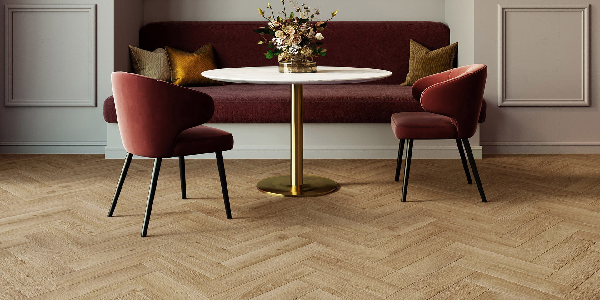 Panele winylowe Invictus Maximus Click Cork Backing Highland Oak Parquet VRHIG5A33C15074P14 Classic to idealna alternatywa dla tradycyjnego parkietu ułożonego w jodełkę. Ich wyjątkowa trwałość i łatwość w utrzymaniu czystości sprawiają, że są one znacznie praktyczniejsze niż drewniane deski, które mogą być wymagające w pielęgnacji. Dzięki innowacyjnej warstwie Scratchmaster® panele są odporne na zarysowania i odkształcenia, co czyni je doskonałym wyborem zarówno do użytku komercyjnego, jak i domowego, zwłaszcza w pomieszczeniach o intensywnym użytkowaniu. Korkowy podkład zapewnia redukcję hałasu uderzeniowego o imponującej wartości 19 dB. Konstrukcja tego modelu sprawia, że jest on również antypoślizgowy (klasa R9) i ognioodporny (klasa ogniowa Bfl-s1), co gwarantuje bezpieczeństwo użytkowania. Montaż paneli jest szybki i prosty dzięki systemowi click, który eliminuje konieczność użycia kleju i specjalistycznych narzędzi. Dodatkowo panele są kompatybilne z ogrzewaniem podłogowym, co zapewnia komfort termiczny. Dzięki wszystkim tym zaletom panele winylowe Invictus Maximus Click Cork Backing Highland Oak Parquet VRHIG5A33C15074P14 Classic są doskonałym wyborem dla osób poszukujących trwałej, eleganckiej i łatwej w montażu podłogi o wysokiej funkcjonalności.
