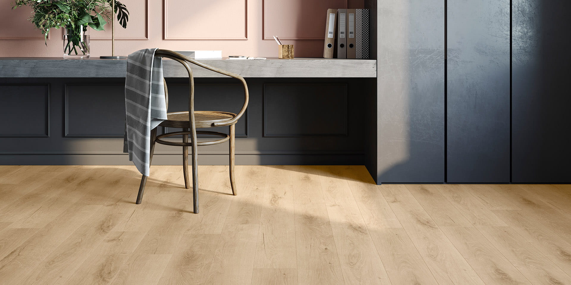 Panele winylowe Invictus Primus Royal Oak VRROY3A33E18121P10 Blonde inspirowane są jasnym dębem o naturalnym, lekko zróżnicowanym rysunku słojów i subtelnej kolorystyce rozjaśniającej przestrzeń. Delikatna struktura powierzchni oddaje charakter drewna, a fazowane krawędzie podkreślają podział desek, dzięki czemu podłoga wizualnie przypomina klasyczną drewnianą posadzkę. Elementy łączy się przy użyciu zamków zatrzaskowych, co umożliwia szybki montaż bez stosowania kleju i pozwala uzyskać stabilne połączenie paneli. Warstwę użytkową chroni technologia Scratchmaster, która zwiększa odporność powierzchni na ścieranie oraz drobne zarysowania pojawiające się podczas codziennego użytkowania. Konstrukcja paneli redukuje przenoszenie dźwięków o około 17 dB, poprawiając komfort akustyczny pomieszczeń. Materiał wolny od ftalanów wspiera utrzymanie bezpiecznego mikroklimatu wnętrz. Panele winylowe Invictus Primus Royal Oak VRROY3A33E18121P10 Blonde przeznaczone są do pomieszczeń dmowych, takich jak sypialnia, pokój gościnny, salon, jadalnia, gabinet i korytarz.