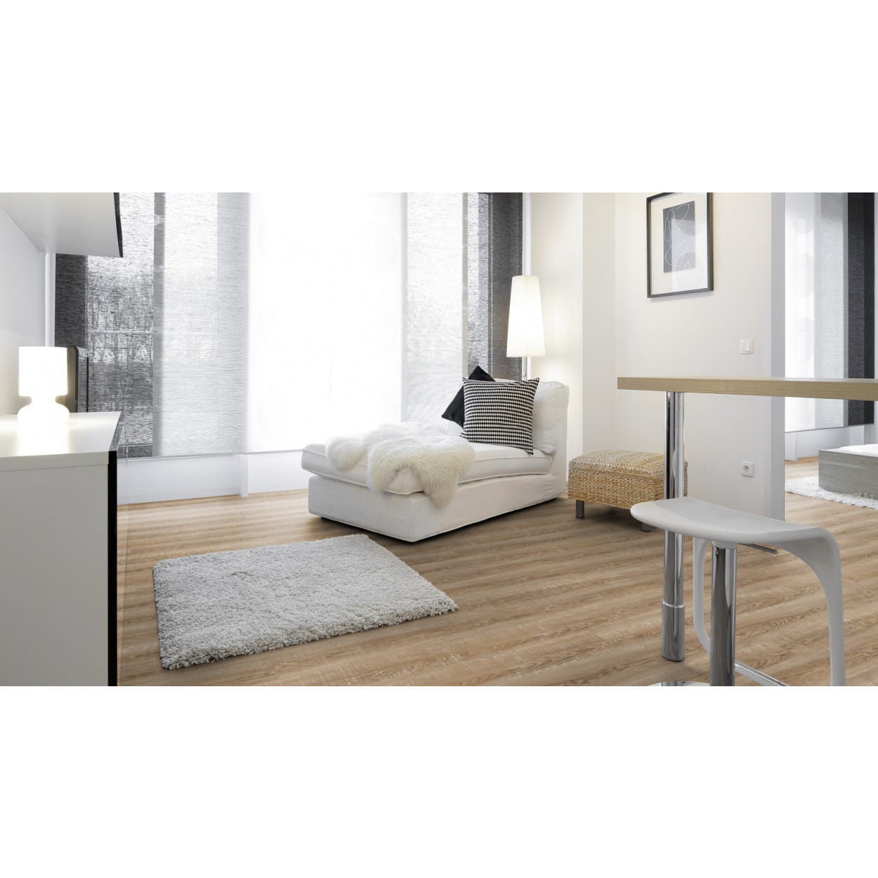 Panele winylowe Project Floors Spc - Core Collection 30 PW4001 to nowoczesna podłoga o niesamowitej trwałości, imitująca drewnianą posadzkę. Całkowita grubość panela wynosi 5,00 mm, a jego warstwa użytkowa - 0,3 mm. Co więcej, dekor posiada powłokę PU, która doskonale chroni podłogę przed zarysowaniami i uszkodzeniami oraz ułatwia jej czyszczenie, konserwację i przedłuża jej żywotność. Panele winylowe posiadają ponadprzeciętne właściwości techniczne, a ich klasa użytkowania to 23 i 31, co świadczy o jej niesamowitej wytrzymałości. Ponadto właściwości antypoślizgowe R9 i R10, antystatyczne, odpornoość chemiczna i ochrona przeciwpożarowa klasy Bfl-s1 świadczy o tym, że produkty są w pełni bezpieczne. Panele winylowe Project Floors Spc - Core Collection 30 PW 4001 doskonale współpracują z ogrzewaniem podłogowym do temperatury 28°C oraz są bardzo przyjemne dla stóp.