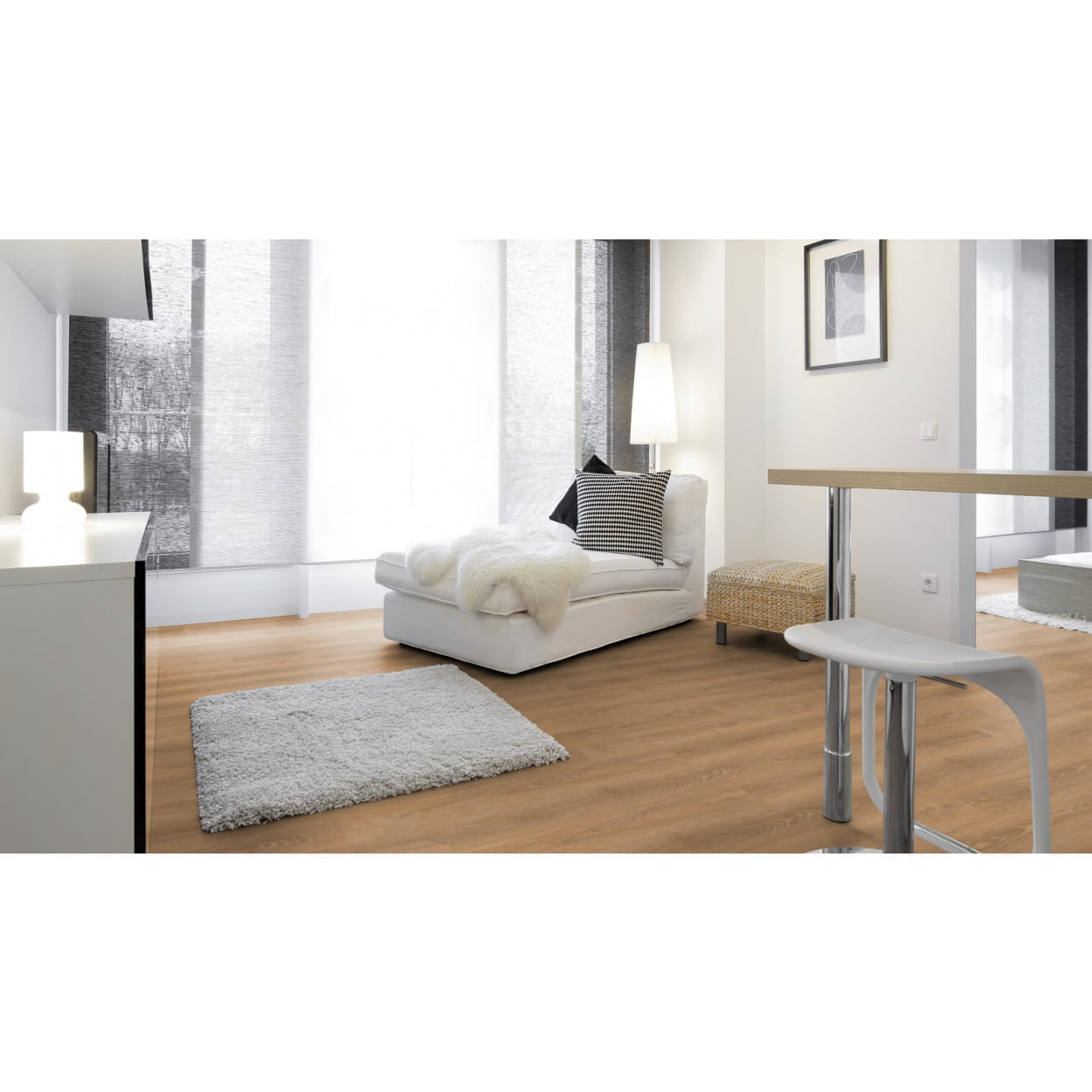 Panele winylowe Project Floors Spc - Core Collection 30 PW4011 to nowoczesna podłoga o niesamowitej trwałości, imitująca drewnianą posadzkę. Całkowita grubość panela wynosi 5,00 mm, a jego warstwa użytkowa - 0,3 mm. Co więcej, dekor posiada powłokę PU, która doskonale chroni podłogę przed zarysowaniami i uszkodzeniami oraz ułatwia jej czyszczenie, konserwację i przedłuża jej żywotność. Panele winylowe posiadają ponadprzeciętne właściwości techniczne, a ich klasa użytkowania to 23 i 31, co świadczy o jej niesamowitej wytrzymałości. Ponadto właściwości antypoślizgowe R9 i R10, antystatyczne, odpornoość chemiczna i ochrona przeciwpożarowa klasy Bfl-s1 świadczy o tym, że produkty są w pełni bezpieczne. Panele winylowe Project Floors Spc - Core Collection 30 PW 4011 doskonale współpracują z ogrzewaniem podłogowym do temperatury 28°C oraz są bardzo przyjemne dla stóp.