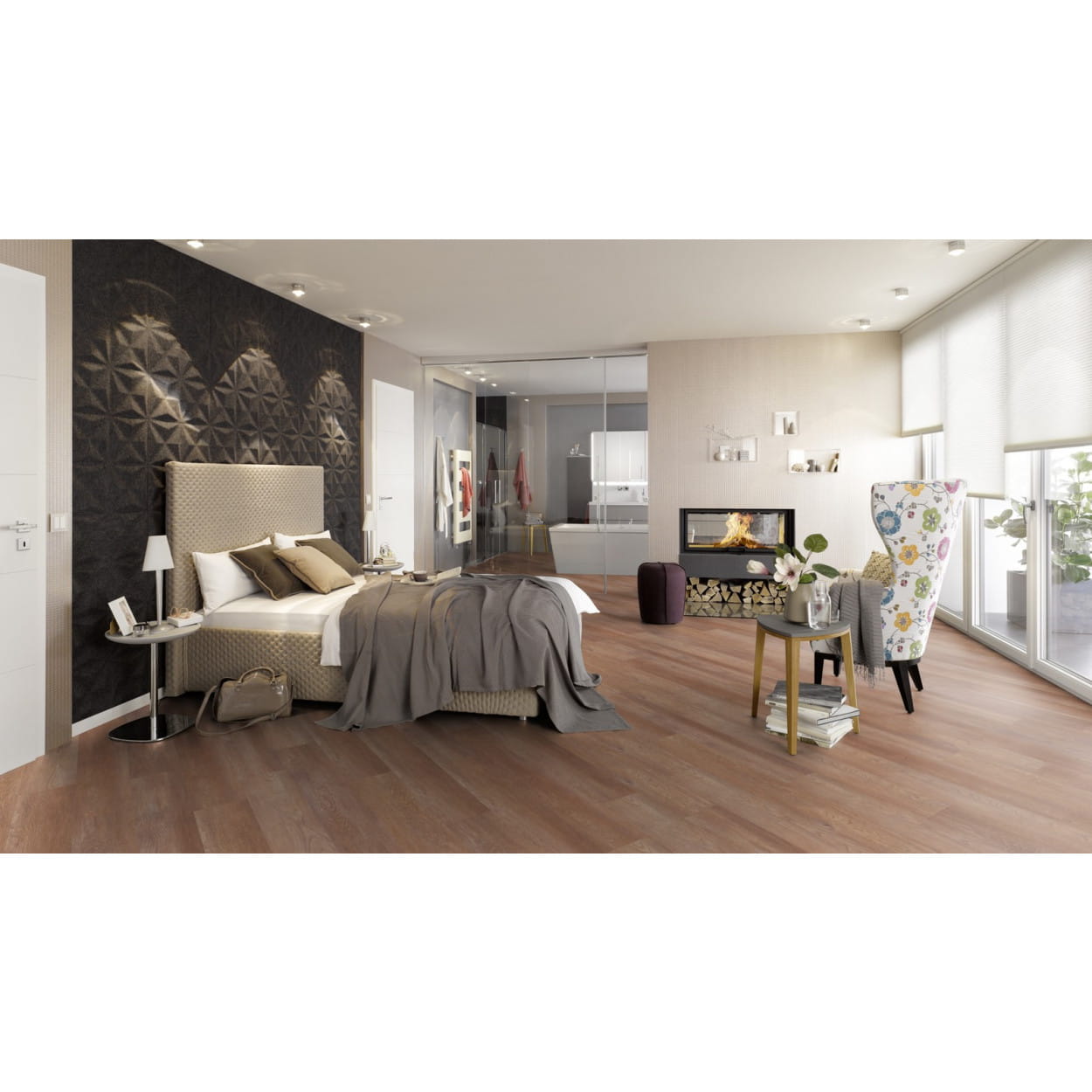 Kolekcja designerskich paneli winylowych Project Floors floor@home 30 składa się ze stu piętnastu wyrafinowanych podłóg, idealnych do absolutnie każdej powierzchni mieszkalnej. Producent oferuje piękną, solidną i łatwą w pielęgnacji gamę pokryć do Twojego domu. Podłogi winylowe wyglądają dobrze w każdym miejscu — od salonu lub sypialni po kuchnię i po łazienkę. Fantastyczna jakość dekorów oraz wspaniałe właściwości techniczne samoprzylepnego winylu sprawiają, że Twój dom w szybkim tempie zmieni się we wnętrze z ponadczasowym designem. Dzięki ogromnemu wyborowi podłóg o prawdziwym wyglądzie drewna oraz luksusowych pokryć imitujących kamień możesz w wymarzony sposób udekorować swoje cztery ściany. Ze względu na realistyczny wygląd panele winylowe Project Floors floor@home 30 są nowoczesną alternatywą dla klasycznych podłóg.