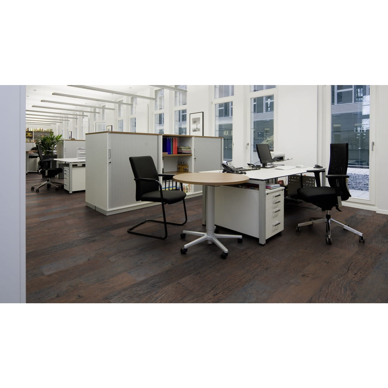 Panele winylowe Project Floors floors@work 55 PW3040 w doskonały sposób naśladują drewnianą podłogę, na której widoczne są okrągłe słoje. Posadzka jest odporna na wszelkie uszkodzenia dzięki warstwie użytkowej 0,55 mm oraz dodatkowej powłoce PU, która ułatwia jej czyszczenie oraz konserwację. Ponadto podłoga posiada właściwości antystatyczne, antypoślizgowe oraz perfekcyjnie współpracuje z ogrzewaniem podłogowym. Panele winylowe Project Floors floors@work 55 PW 3040 to idealny dodatek do domów, jak i do miejsc o dużym natężeniu ruchu. Co więcej, wykładziny cechują się ochroną przeciwpożarową klasy Bfl-s1 oraz odpornością chemiczną.