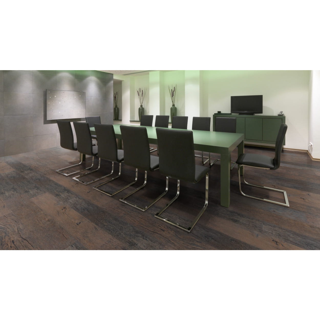 Kolekcja paneli winylowych Project Floors floor@work 55 składa się ze stu osiemnastu wzorniczych podłóg, które idealnie nadadzą się do miejsc o dużym natężeniu ruchu, takich jak sklepy, hotele i restauracje, placówki służby zdrowia i biura. Designerskie podłogi łączą autentyczny wygląd drewna, kamienia, ceramiki lub betonu z trwałością i łatwością konserwacji podłóg syntetycznych. Wszystkie podłogi winylowe cechuje nieregularna powierzchnia, która jest idealnym odzwierciedleniem prawdziwego surowca. Oprócz niesamowitego i szczegółowego wzornictwa oraz wyczuwalnej pod palcami faktury warto wspomnieć o technicznych właściwościach tego imponującego produktu. Kolekcja paneli winylowych Project Floors floor@work 55 posiada warstwę użytkową o grubości 0,55 mm oraz dodatkową powłokę PU, która ma za zadanie nie tylko chronić powierzchnię, ale również ułatwić jej czyszczenie oraz konserwację. Ponadto podłogi winylowe posiadają właściwości antystatyczne, antypoślizgowe oraz perfekcyjnie współpracują z ogrzewaniem podłogowym.