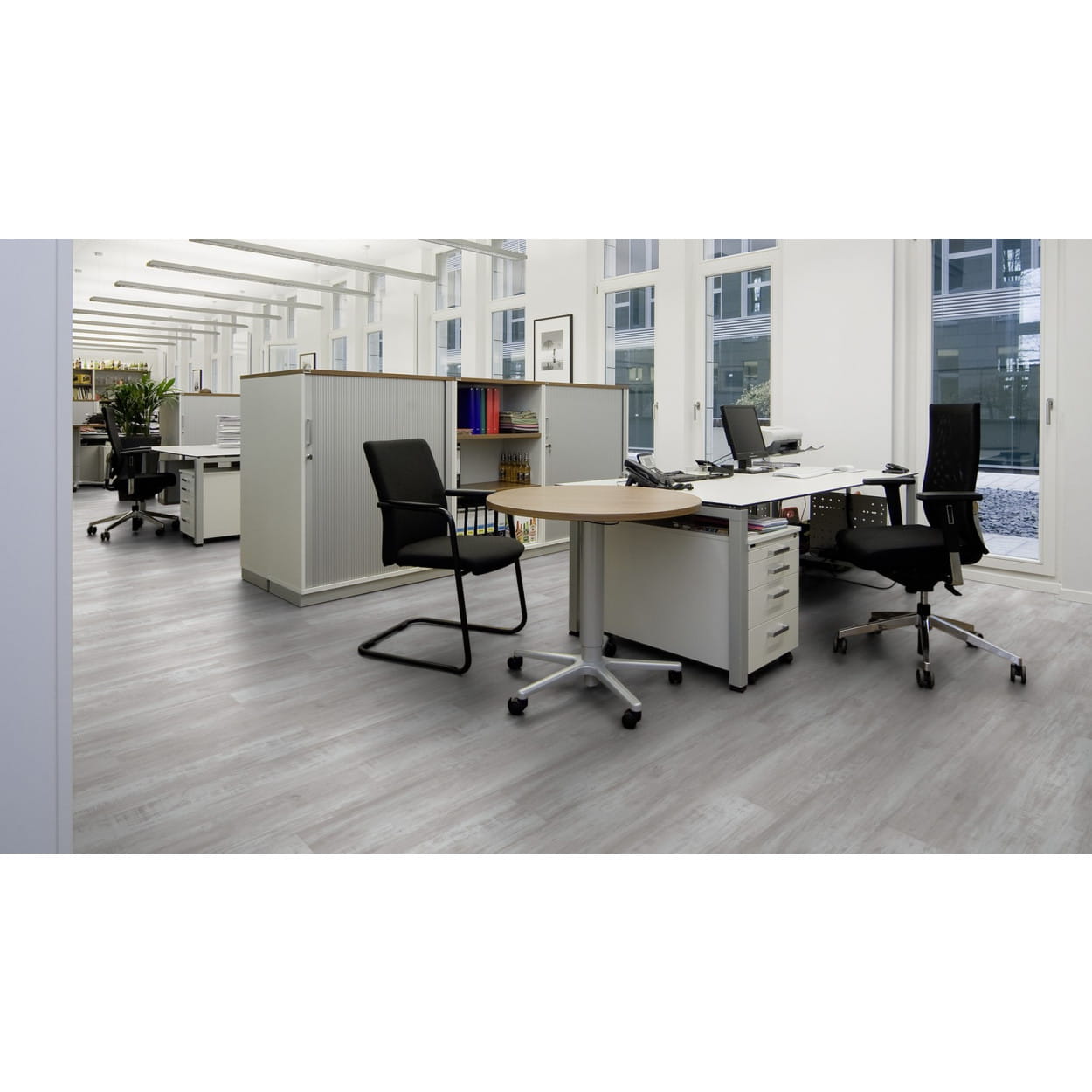 Panele winylowe Project Floors floors@work 55 PW3070 w doskonały sposób naśladują drewnianą podłogę, na której widoczne są okrągłe słoje. Posadzka jest odporna na wszelkie uszkodzenia dzięki warstwie użytkowej 0,55 mm oraz dodatkowej powłoce PU, która ułatwia jej czyszczenie oraz konserwację. Ponadto podłoga posiada właściwości antystatyczne, antypoślizgowe oraz perfekcyjnie współpracuje z ogrzewaniem podłogowym. Panele winylowe Project Floors floors@work 55 PW 3070 to idealny dodatek do domów, jak i do miejsc o dużym natężeniu ruchu. Co więcej, wykładziny cechują się ochroną przeciwpożarową klasy Bfl-s1 oraz odpornością chemiczną.