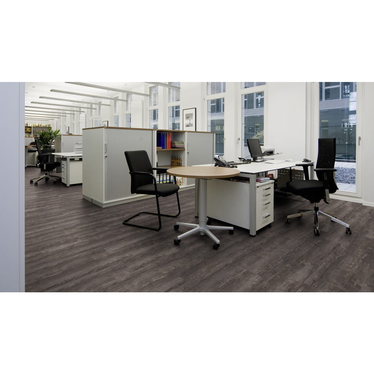 Kolekcja paneli winylowych Project Floors floor@work 55 składa się ze stu osiemnastu wzorniczych podłóg, które idealnie nadadzą się do miejsc o dużym natężeniu ruchu, takich jak sklepy, hotele i restauracje, placówki służby zdrowia i biura. Designerskie podłogi łączą autentyczny wygląd drewna, kamienia, ceramiki lub betonu z trwałością i łatwością konserwacji podłóg syntetycznych. Wszystkie podłogi winylowe cechuje nieregularna powierzchnia, która jest idealnym odzwierciedleniem prawdziwego surowca. Oprócz niesamowitego i szczegółowego wzornictwa oraz wyczuwalnej pod palcami faktury warto wspomnieć o technicznych właściwościach tego imponującego produktu. Kolekcja paneli winylowych Project Floors floor@work 55 posiada warstwę użytkową o grubości 0,55 mm oraz dodatkową powłokę PU, która ma za zadanie nie tylko chronić powierzchnię, ale również ułatwić jej czyszczenie oraz konserwację. Ponadto podłogi winylowe posiadają właściwości antystatyczne, antypoślizgowe oraz perfekcyjnie współpracują z ogrzewaniem podłogowym.