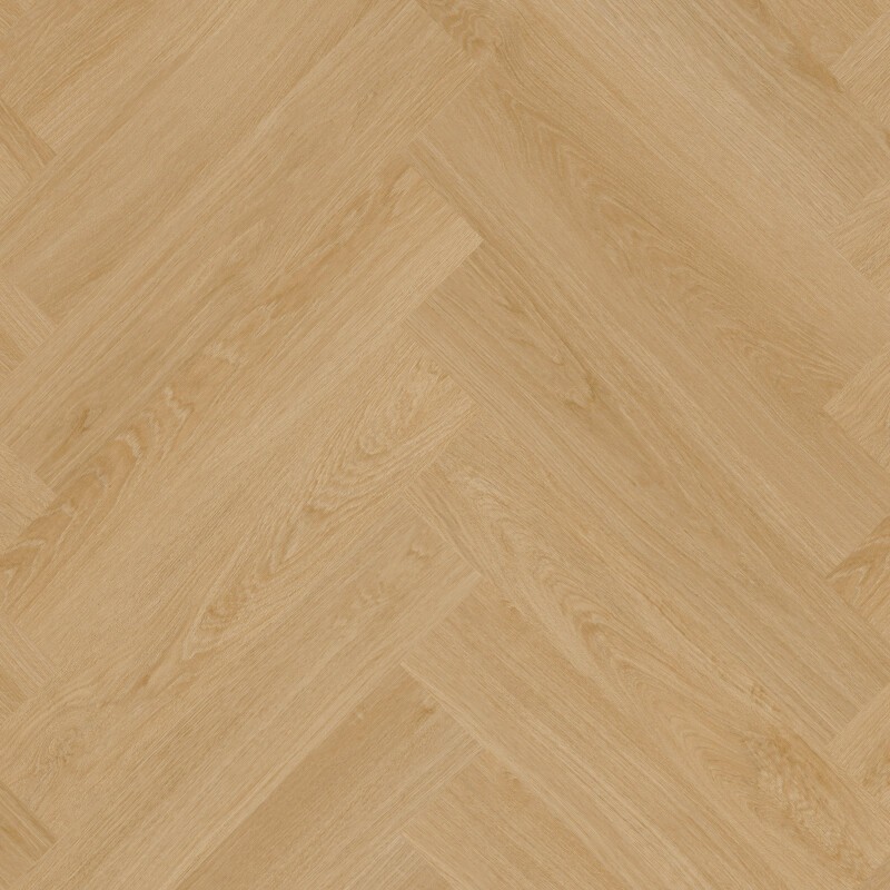 Panele winylowe Therdex Rigid Click Series Planks C7521 zostały opracowane w formacie do układania w jodełkę, który wprowadza do wnętrza wyraźny porządek geometryczny. Klasyczny dekor dębowy utrzymany jest w jasnej, naturalnej tonacji, z czytelnym rysunkiem słojów i subtelnymi rowkami, które w układzie jodełki zyskują dodatkową głębię wizualną. Tłoczenie synchroniczne Registered Embossed sprawia, że powierzchnia nie jest gładka, a struktura pozostaje zgodna z grafiką drewna. System montażu na zamki zatrzaskowe umożliwia szybkie i precyzyjne łączenie elementów bez użycia kleju, co znacząco usprawnia instalację i pozwala zachować czystość prac wykończeniowych. Całkowita grubość 6,00 mm wspiera stabilność konstrukcji i bardzo dobre przewodzenie ciepła, dlatego podłoga pozostaje kompatybilna z ogrzewaniem podłogowym. Klasa antypoślizgowości R9, klasyfikacja ogniowa Bfl-S1 oraz przystosowanie do pomieszczeń z krzesłami na kółkach zwiększają funkcjonalność rozwiązania w przestrzeniach mieszkalnych i użytkowych. Matowe wykończenie PU lacquer stabilizuje odbiór koloru i ogranicza refleksy światła, a w tej konfiguracji panele winylowe Therdex Rigid Click Series Planks C7521 stanowią spójną propozycję dla wnętrz, w których liczy się szybki montaż i wyrazista forma jodełki.