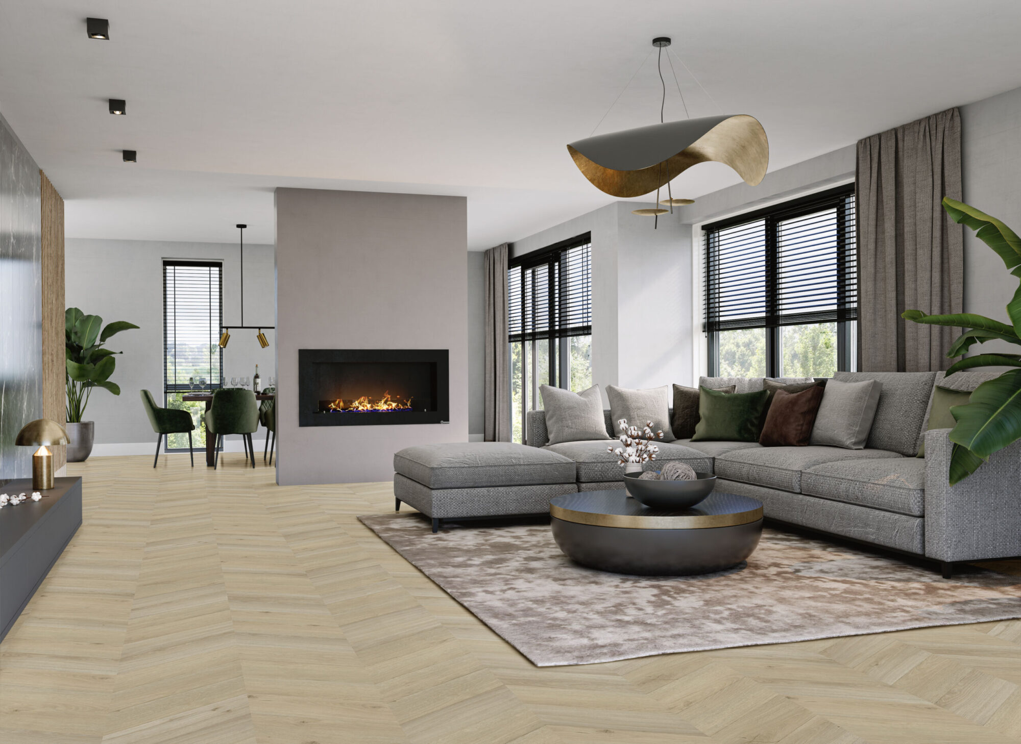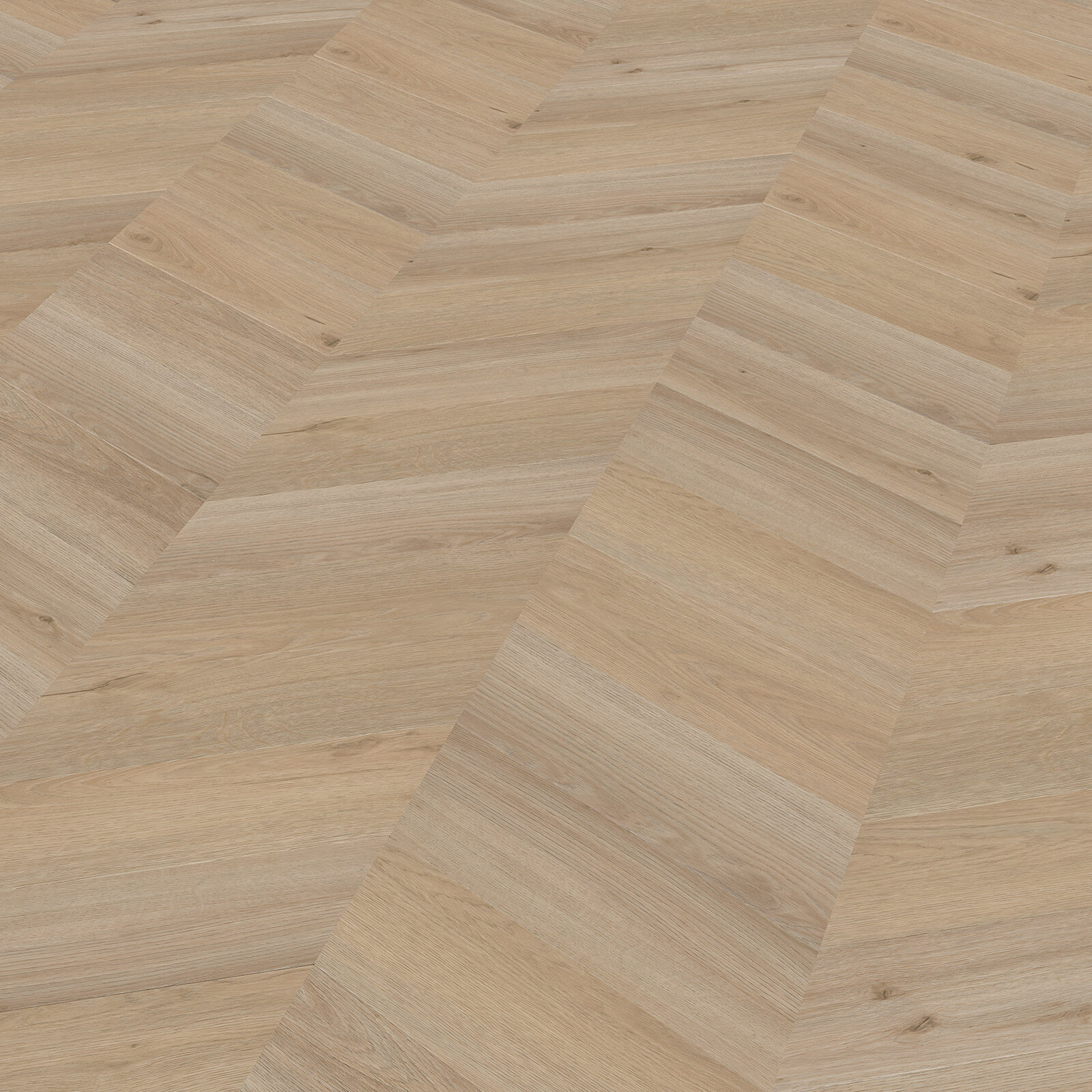 Panele winylowe Vivafloors Chevron Dryback są stworzone dla fanów jodełki francuskiej. Doskonale imitują prawdziwe, dębowe parkiety. Wyróżniają się idealnie dobranymi odcieniami i realistyczną fakturą. W dodatku są proste w utrzymaniu w czystości, kompatybilne z ogrzewaniem podłogowym i trwałe.