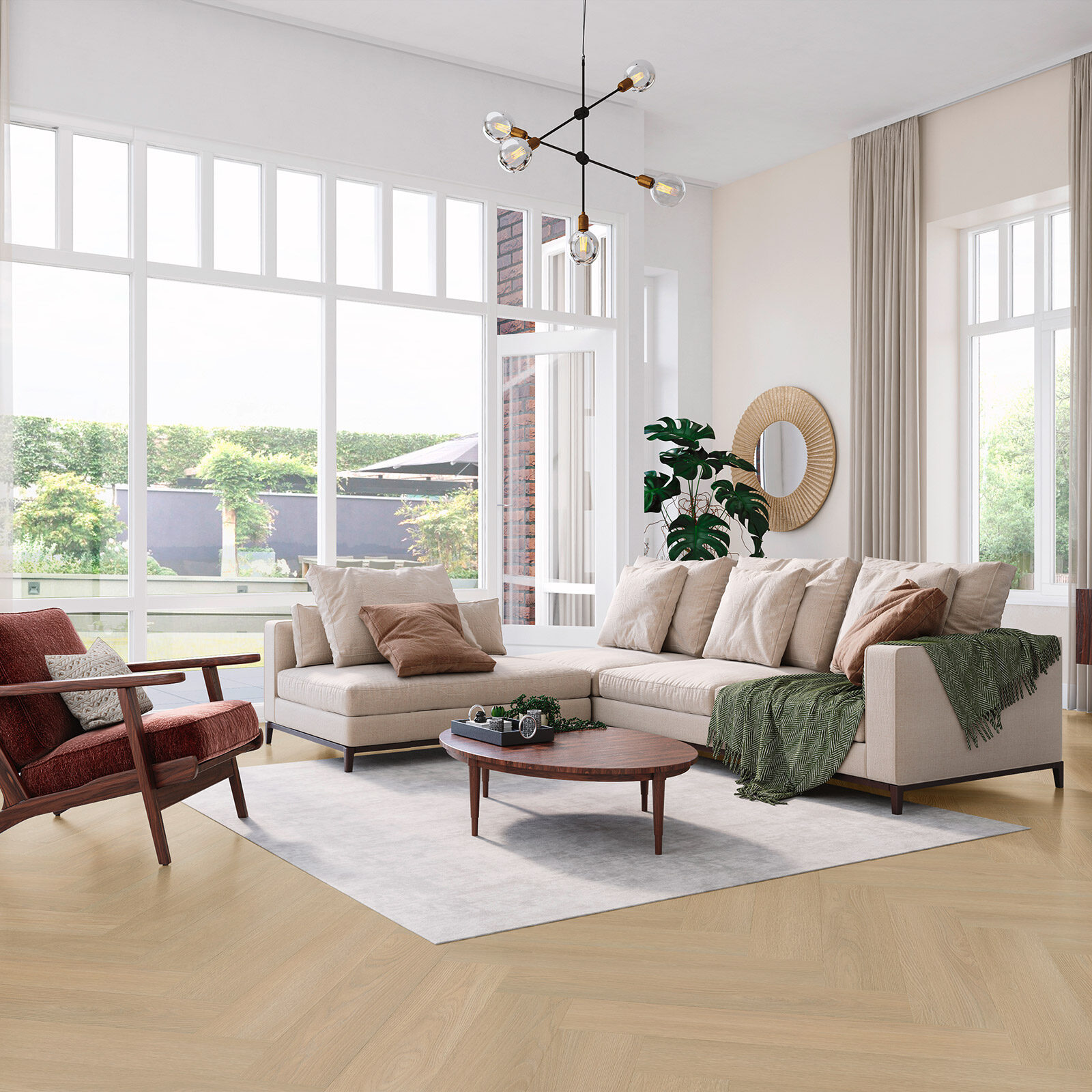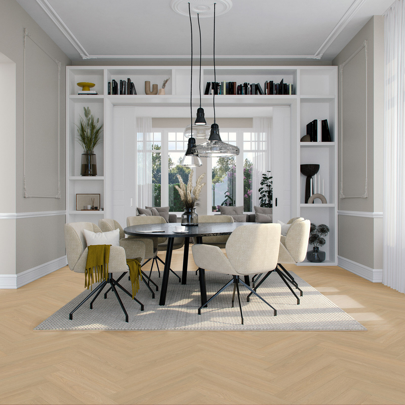 Produkty Vivafloors Herringbone Dryback są stworzone dla miłośników klasycznej elegancji. Dostępne w niej panele winylowe układa się w modną i ponadczasową jodełkę, która wnosi do przestrzeni masę uroku i wyrafinowania. Poza walorami estetycznymi każdy model z tej serii ma również masę praktycznych zalet. Panele Vivafloors Herringbone Dryback są proste w montażu, trwałe, łatwe w utrzymaniu oraz kompatybilne z ogrzewaniem podłogowym.