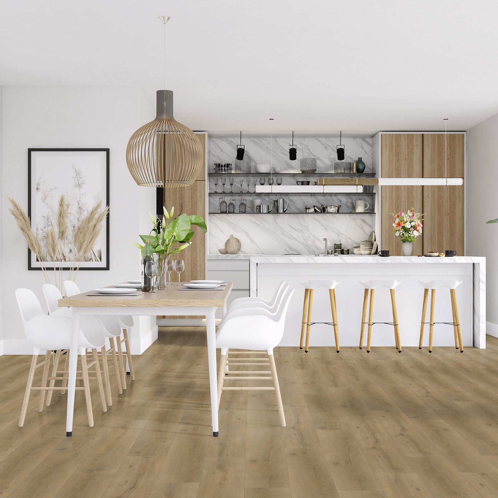 Panele winylowe Vivafloors Oak Click wyróżniają się nowoczesnym systemem montażu na zamki zatrzaskowe. Dostępne w tej serii produkty są także trwałe, odporne na wilgoć i ścieranie oraz w doskonały sposób imitują prawdziwe, dębowe drewno, które jest eleganckie i ponadczasowe. Panele winylowe Vivafloors Oak Click pięknie prezentują się w skandynawskich salonach, industrialnych kuchniach czy rustykalnych jadalniach – do każdego miejsca wprowadzą ciepło i przytulność.