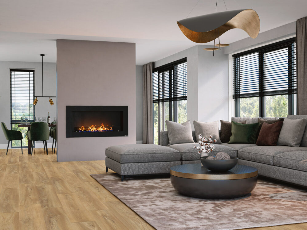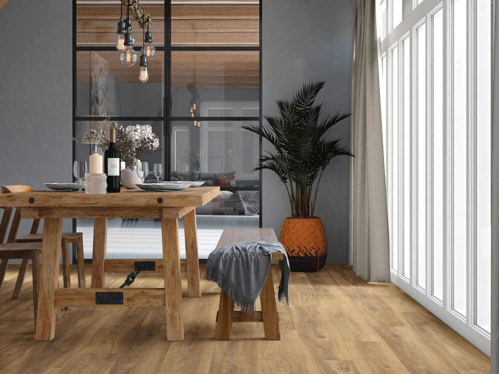 Panele winylowe Vivafloors Oak Dryback L3530 wnoszą do wnętrz ciepło i naturalny wygląd dębu, wzbogacony o wyraziste sęki i subtelną strukturę drewna. Taki efekt nadaje podłodze autentyczności, a matowe wykończenie podkreśla elegancję i naturalność powierzchni. Inspiracją do powstania paneli był niemiecki dąb z regionu Rothaargebirge, słynący z wyjątkowego usłojenia i szlachetnego charakteru. Technologia register embossing pozwala uzyskać efekt wyczuwalnej w dotyku faktury drewna, która idealnie współgra z wizualnym rysunkiem desek. Panele winylowe Vivafloors Oak Dryback L3530 montuje się na klej, co zapewnia stabilność i trwałość na długie lata. Podłoga jest odporna na wilgoć, łatwa w czyszczeniu, dźwiękochłonna i antypoślizgowa (R10). Kompatybilność z ogrzewaniem podłogowym podnosi komfort codziennego użytkowania.