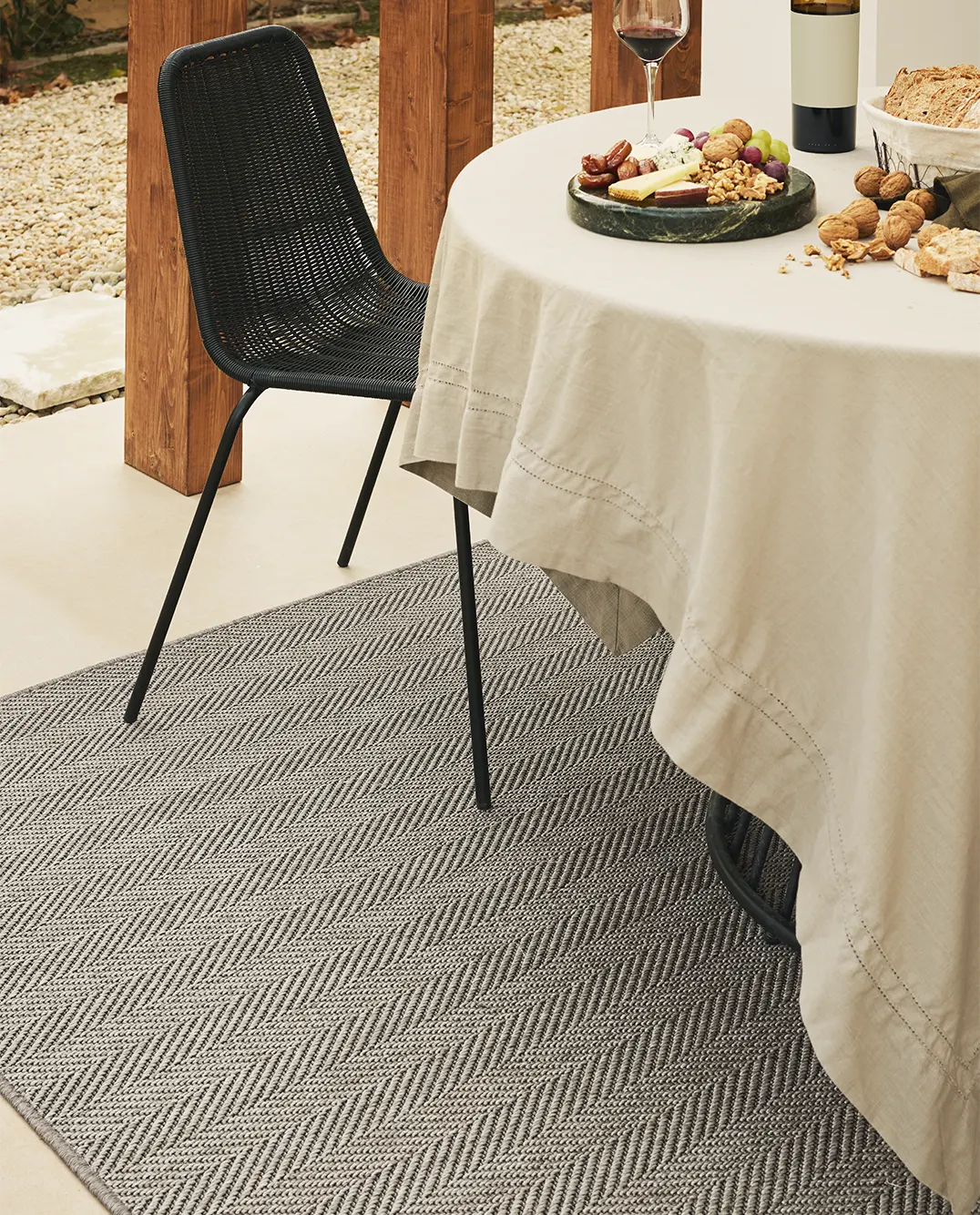 Dywan Rols Palma Icon Cinder to idealne rozwiązanie do zewnętrznych i wewnętrznych aranżacji. Wykonano go głównie z polipropylenu na krośnie tkanym na płasko, przez co charakteryzuje się on wysoką trwałością i odpornością na trudne warunki użytkowe. Dzięki specjalnemu zabezpieczeniu UV dywan ten nie blaknie pod wpływem promieniowania słonecznego. Jest wodoodporny i łatwy w utrzymaniu, co czyni go praktycznym wyborem dla tarasów, altan czy balkonów. Design dywanu Rols Palma Icon Cinder nawiązuje do niezwykle modnej juty, którą bardzo łatwo zaaranżować. Jego neutralna kolorystyka idealnie komponuje się z różnorodnymi meblami i dodatkami. Dywan jest kompatybilny z ogrzewaniem podłogowym, co zwiększa komfort użytkowania w chłodniejsze dni. Rols Palma Icon Cinder wykazuje właściwości antystatyczne, co minimalizuje gromadzenie się kurzu i ułatwia jego czyszczenie. Regularne odkurzanie bez użycia szczotek obrotowych zapewnia jego długotrwały, estetyczny wygląd.